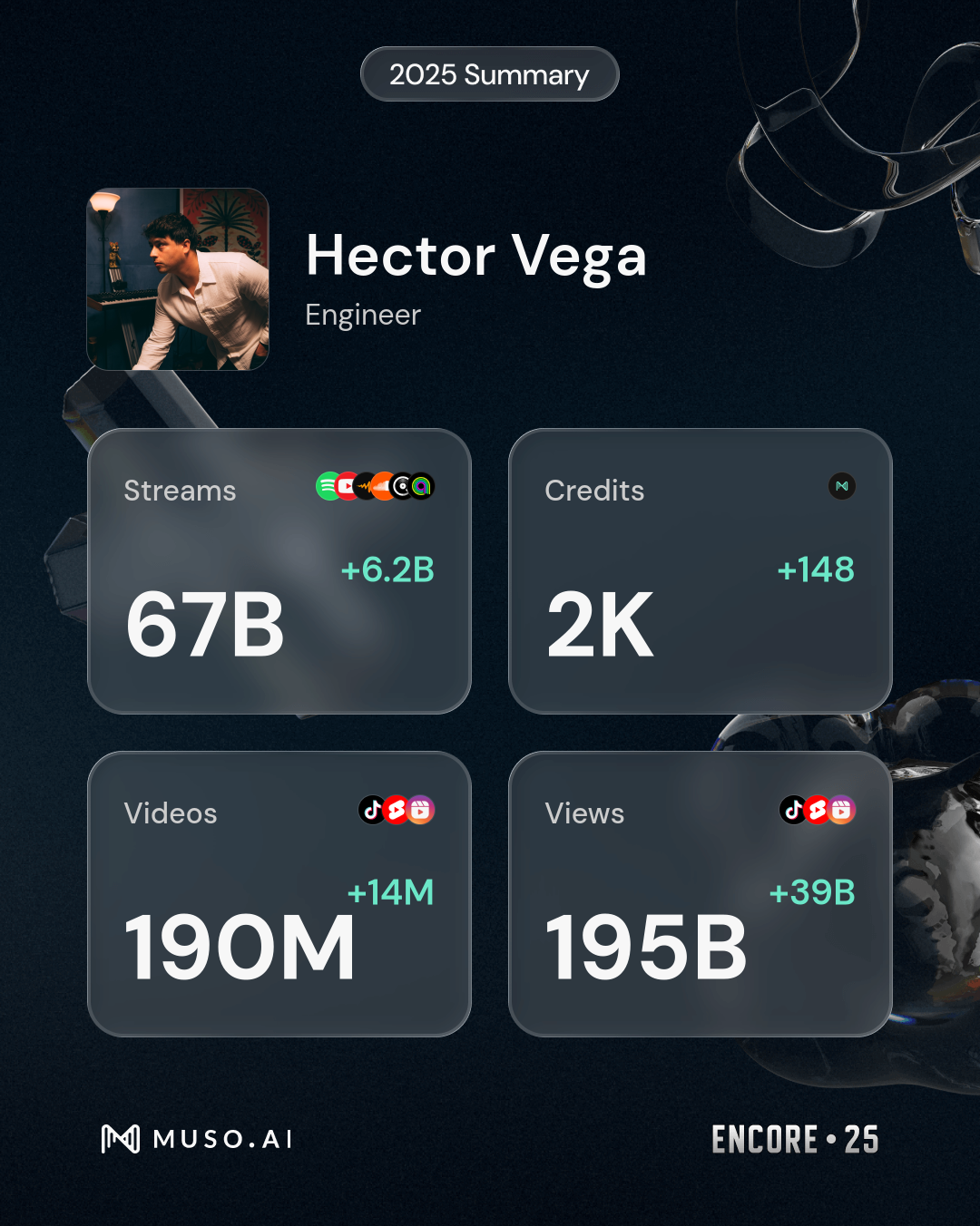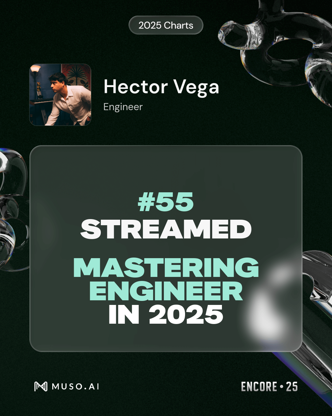 Hailing from the bay city of Ensenada, Mexico, Héctor Vega has established his career as a Mastering Engineer in Los Angeles, CA. He has mastered over a thousand releases and amassed over 60 billion streams working with artists such as Doja Cat, Khalid, SZA, Tate McRae, Sinead Harnett, Latto, Chance Peña, Brice Vine, Half-Alive, 24KGoldn, Zayn, Rico Nasty, Raveena, Audrey Mika, Austin Millz, Tai Verdes, Charlieonafriday, Stacey Ryan, Remi Wolf, Brasstracks, BLK ODYSSY, Snoh Alegra, and more.